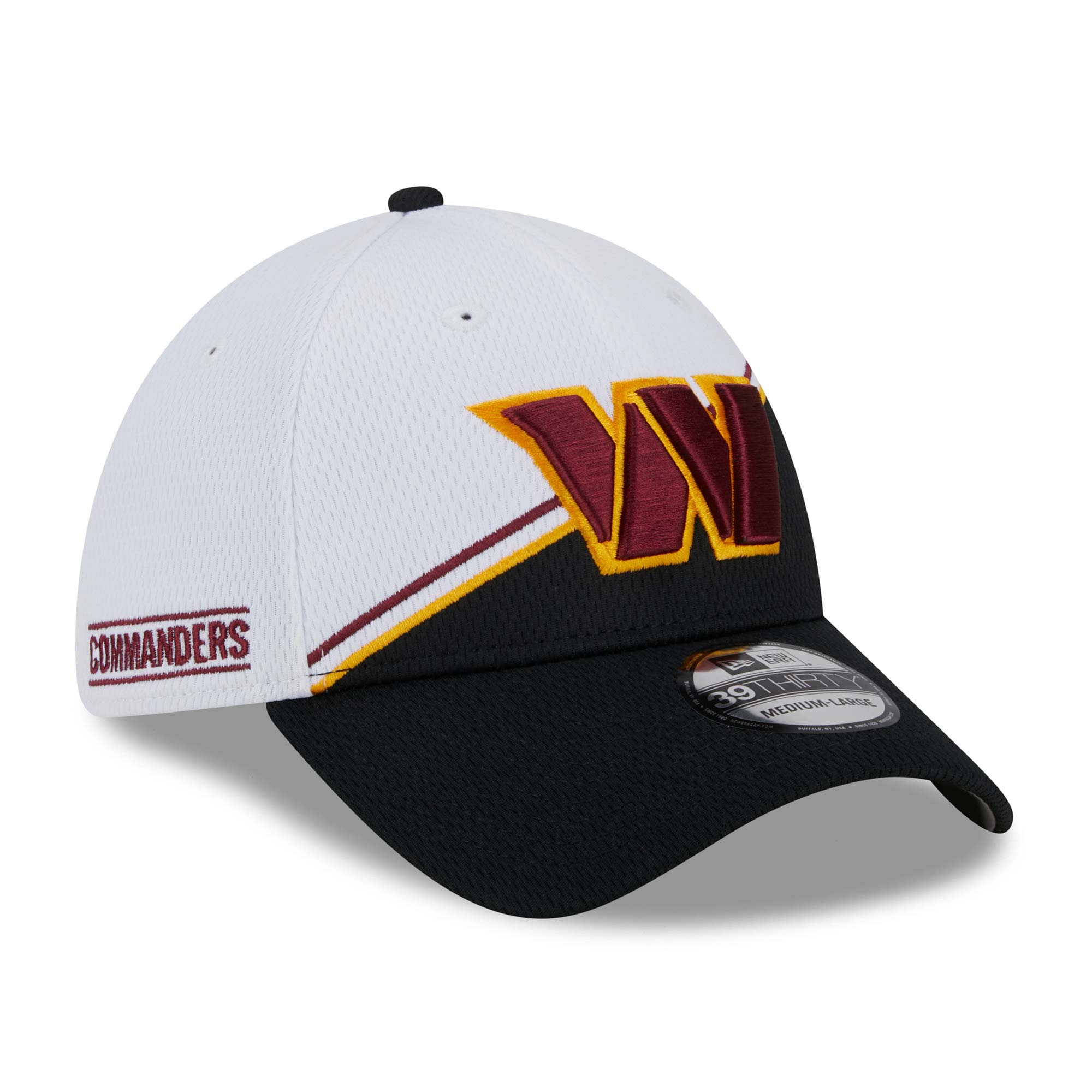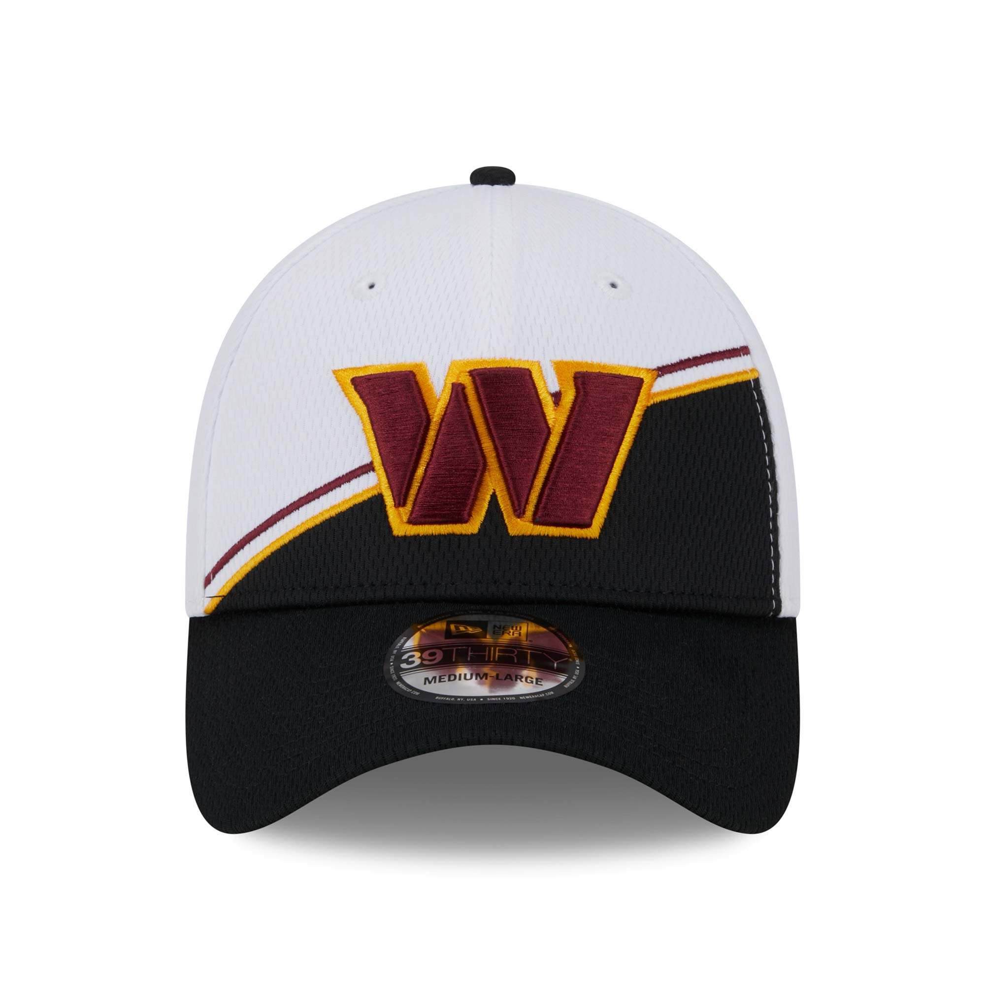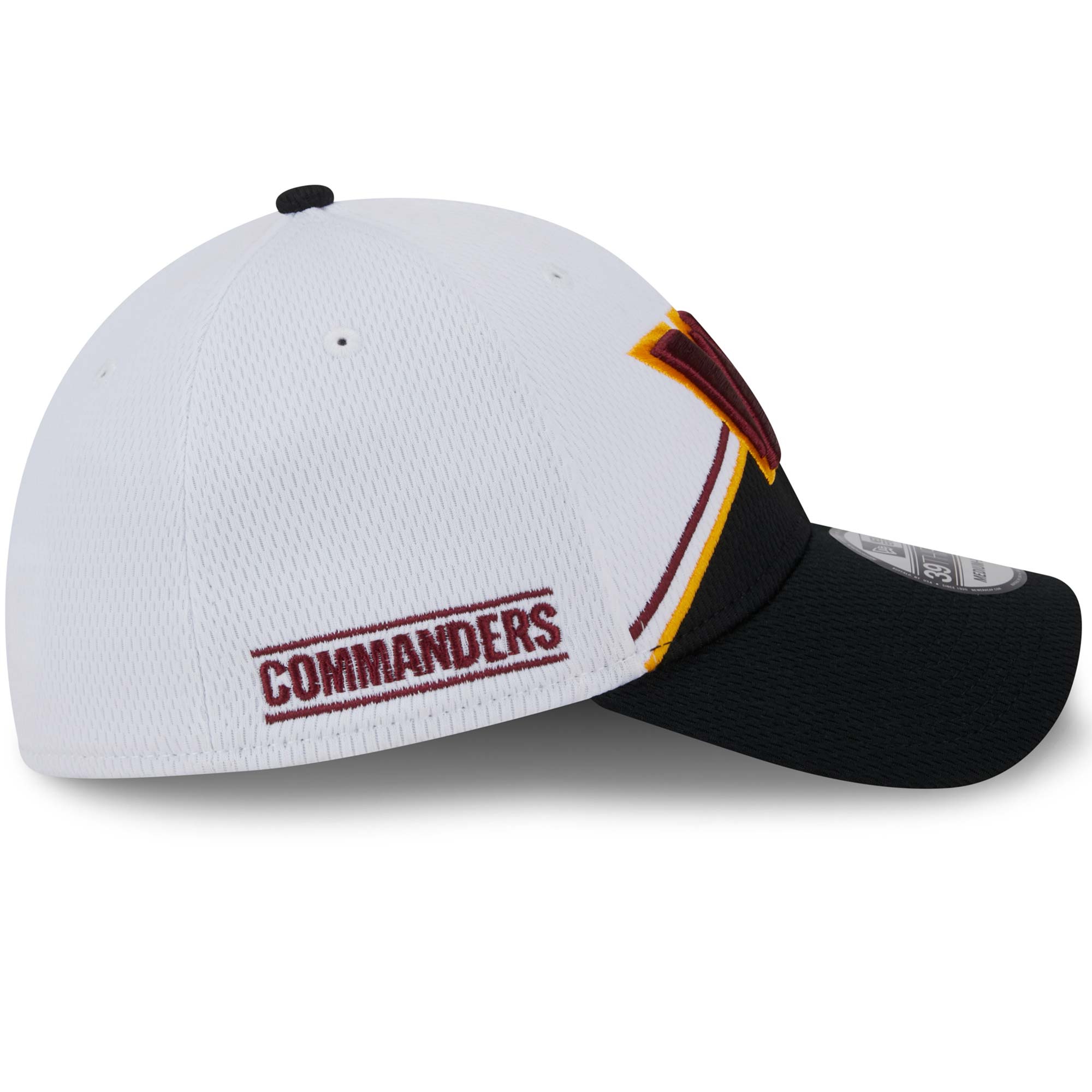 New Era American Football Flex Cap von deinen Washington Commanders im Stretch-Fit 39THIRTY Style aus der offiziellen 2023 NFL On Field Sideline Kollektion.