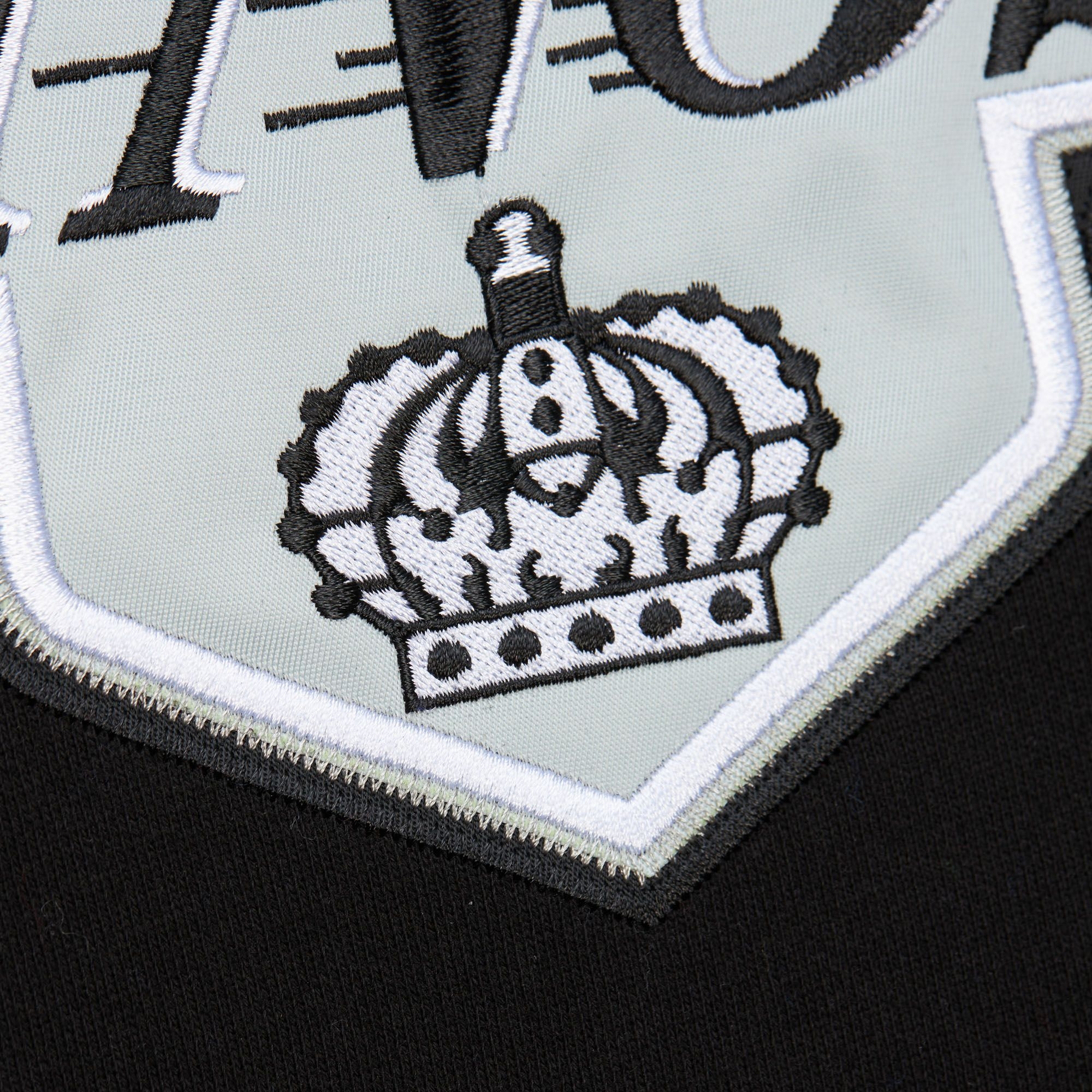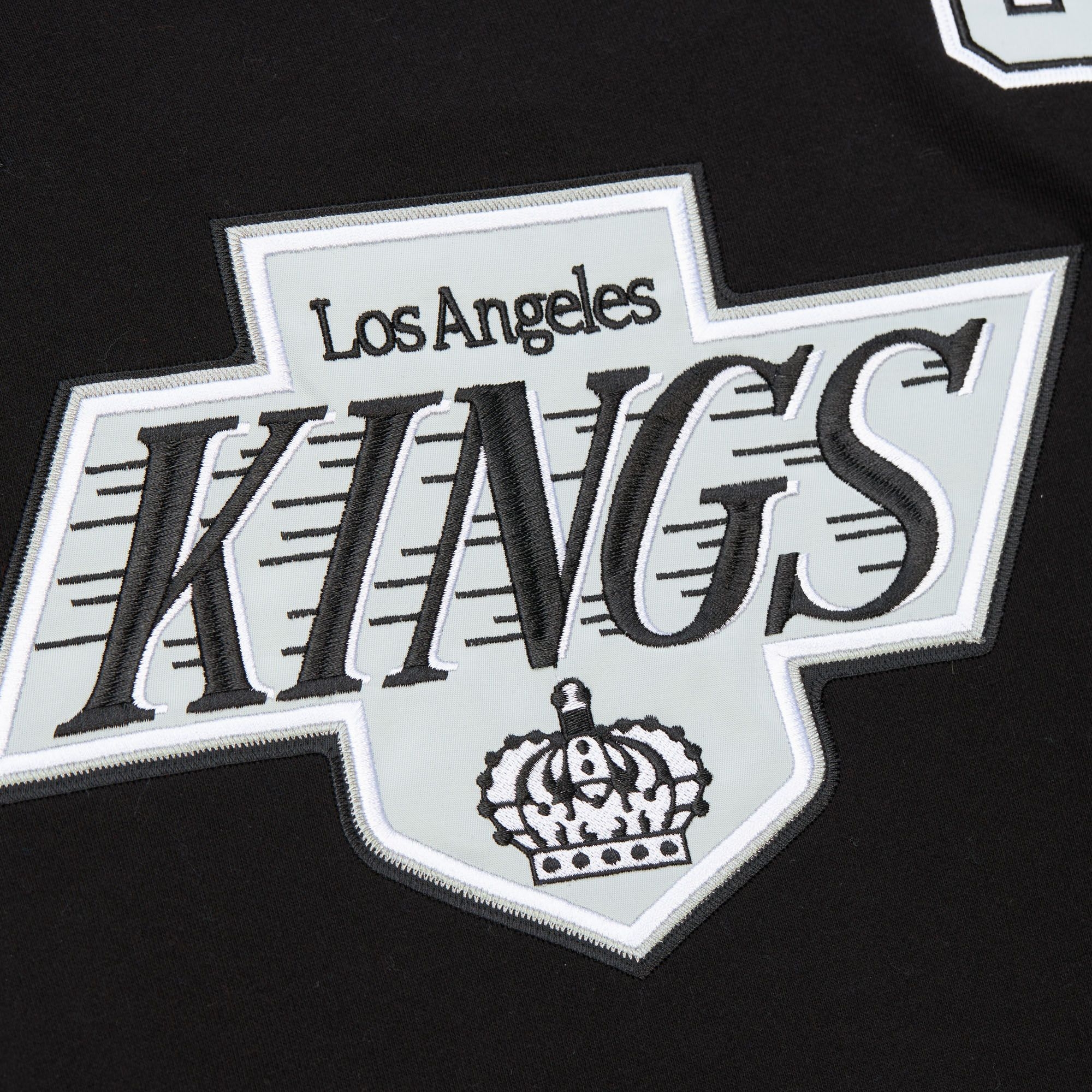 Auf der Vorderseite ist das große Los Angeles Kings Teamlogo hochwertig aufgestickt. ZUsätzlich das das Stanley Cup und das Captain's C aufgestckt. Die Rückseite sind mit Gertzky's Namen und Nummer verziert. Zusätzlich sind die Ärmel mit klassichen Teamstreifen verziert.