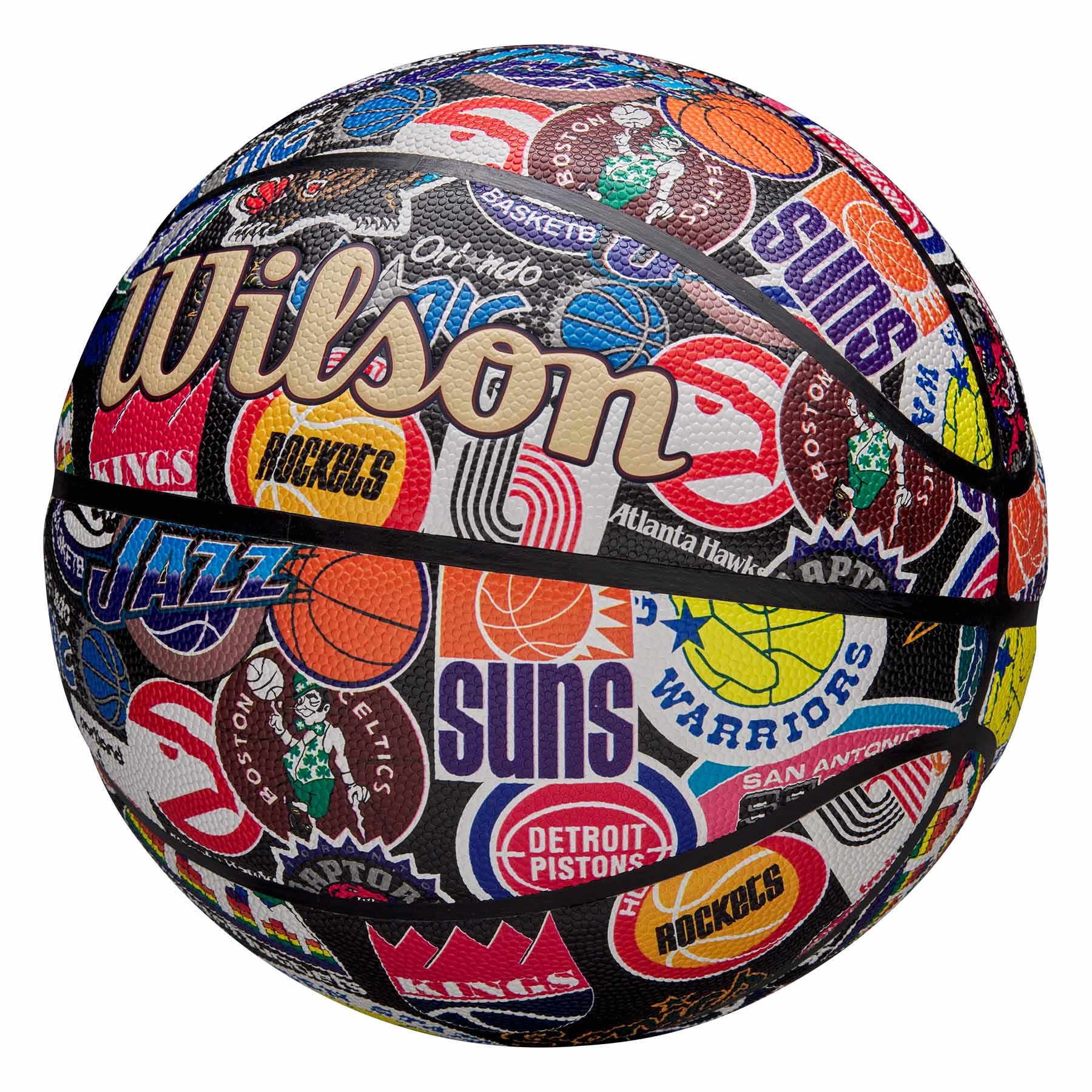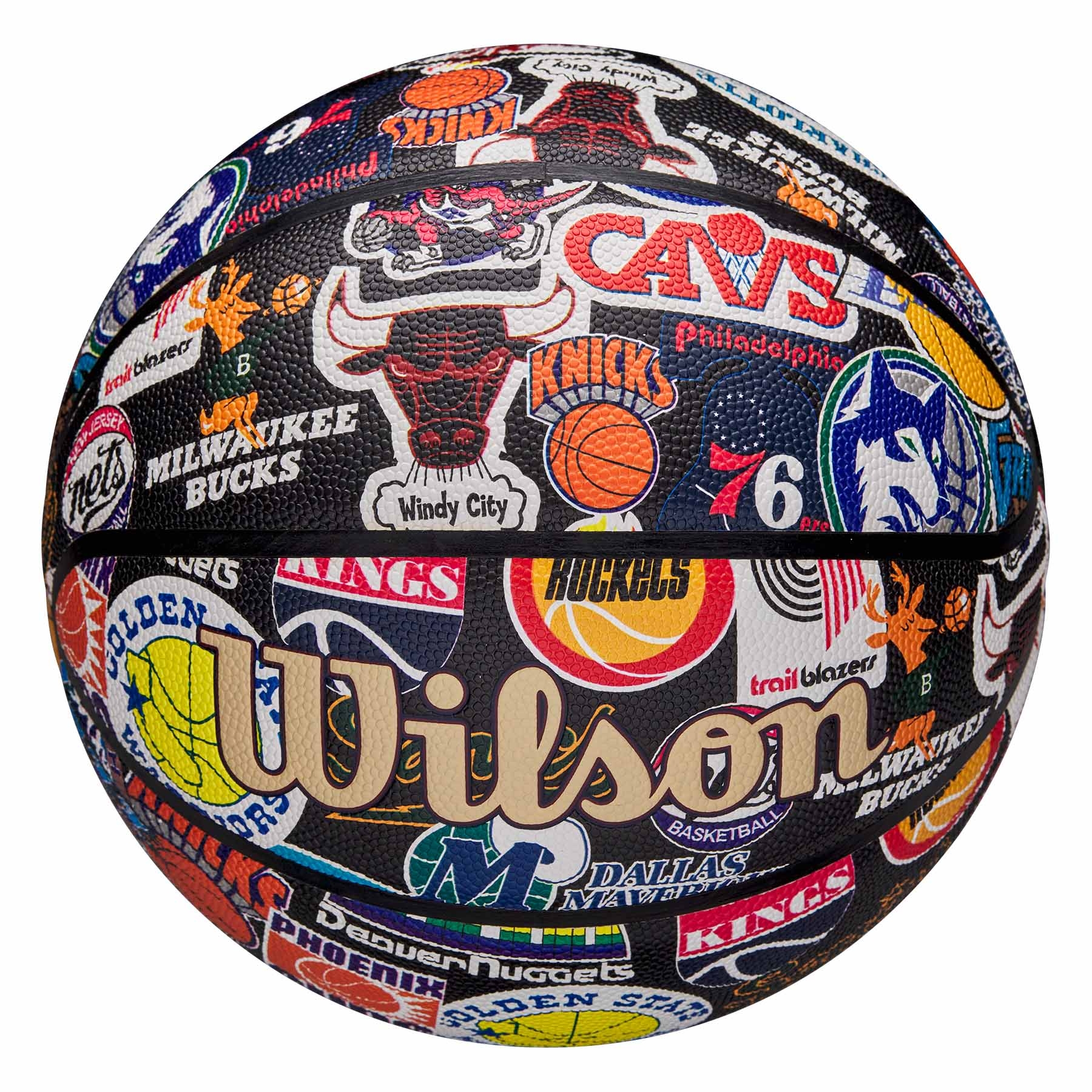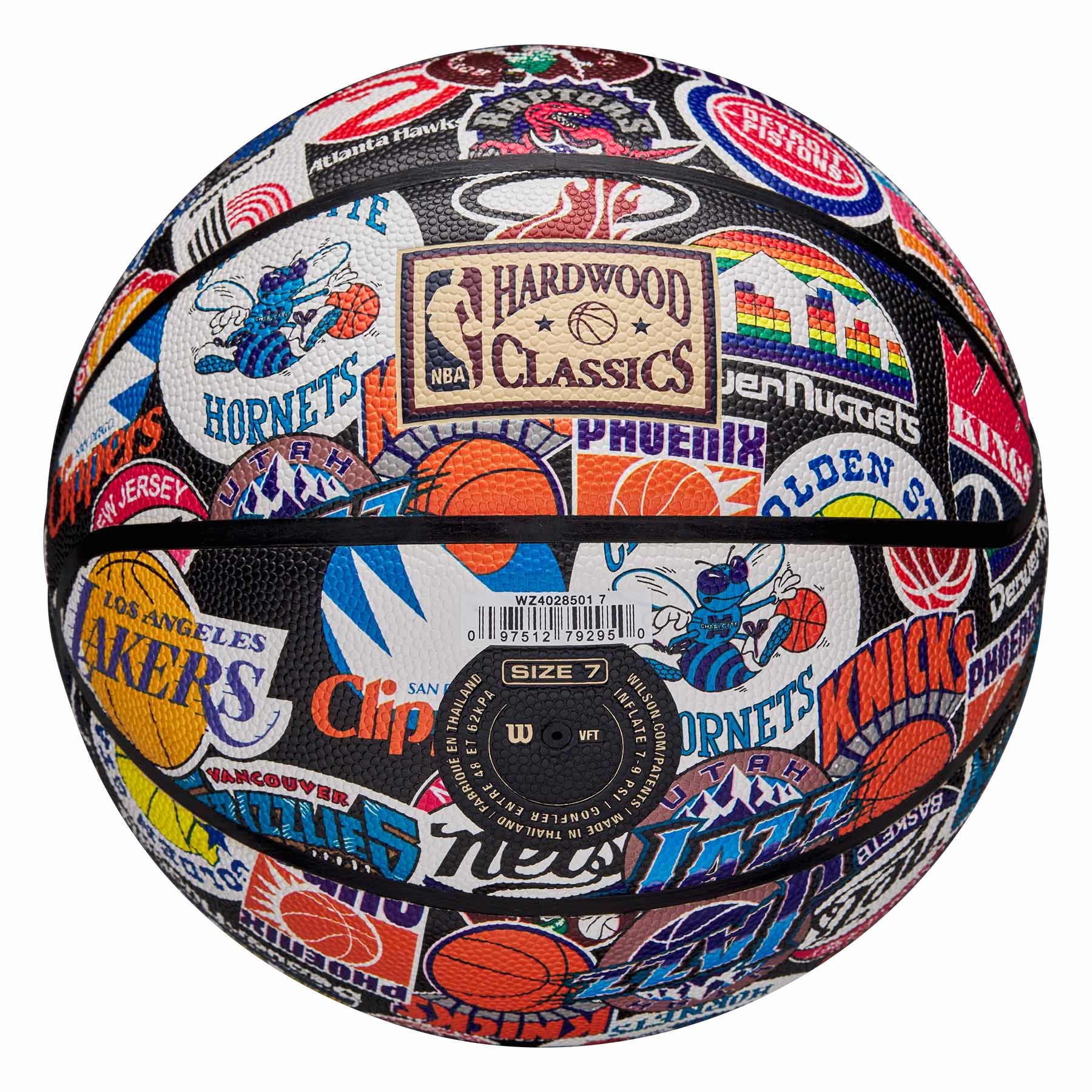 Wilson NBA PureFeel Indoor/Outdoor Basketball den klassischen Hardwood Classics Teamlogos der Liga.